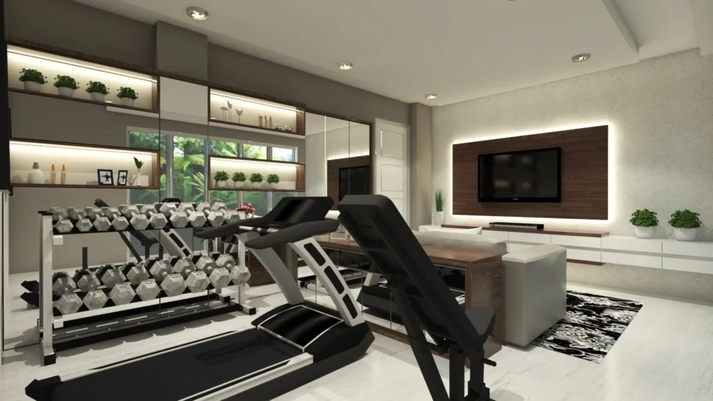 A well-designed home fitness room goes beyond just adding gym equipment. We integrate features that enhance comfort, functionality, and motivation, such as:
